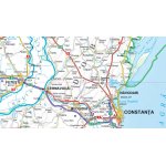 Mapa turystyczno-samochodowa obejmująca Rumunię,  Mołdawię i wschodnią część Węgier, dwustronnie laminowana, trwała, wygodna w składaniu.
